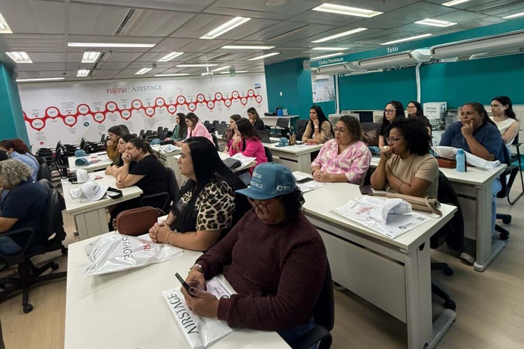 Mesmo fora das turmas exclusivas, a presença feminina vem crescendo nos treinamentos da marca. Atualmente, cerca de 10% dos participantes dos cursos técnicos da Fujitsu são mulheres. Pode parecer um percentual modesto, mas dentro de um setor historicamente masculino ele indica uma tendência clara de mudança.